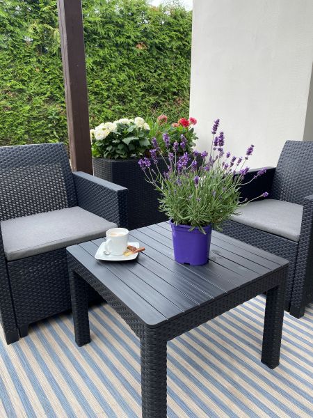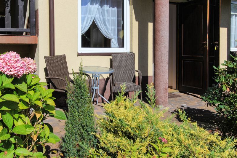 Do każdego przypisane jest niezależne wejście z podwórka bądź tarasu. Na balkonach wygodne meble ogrodowe - idealne do wypoczynku na świeżym powietrzu.