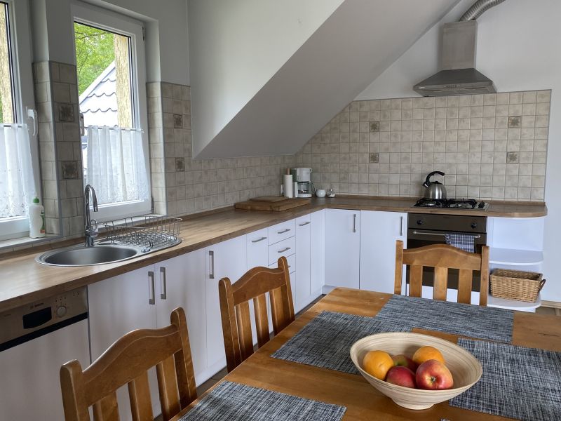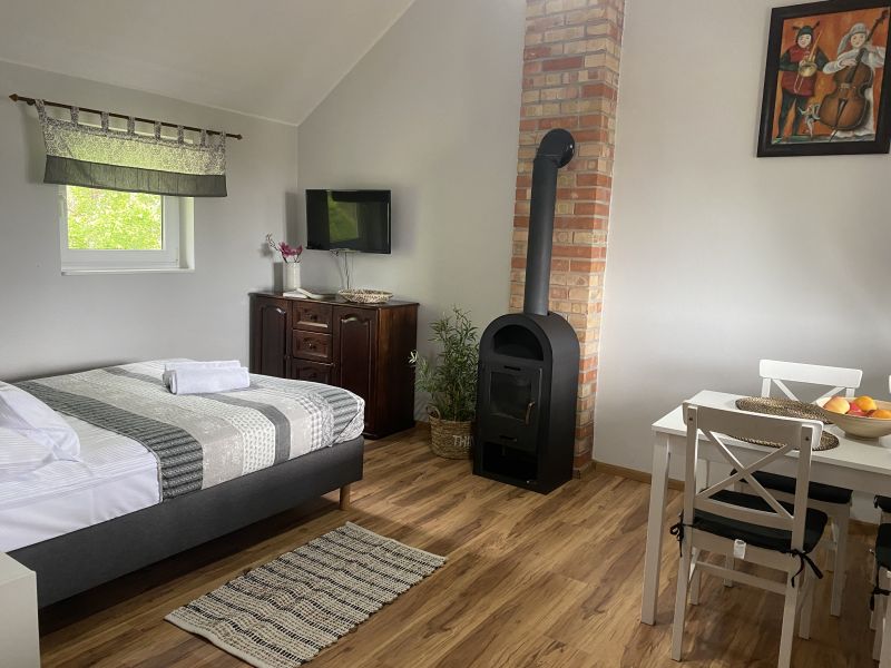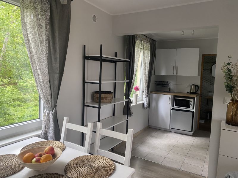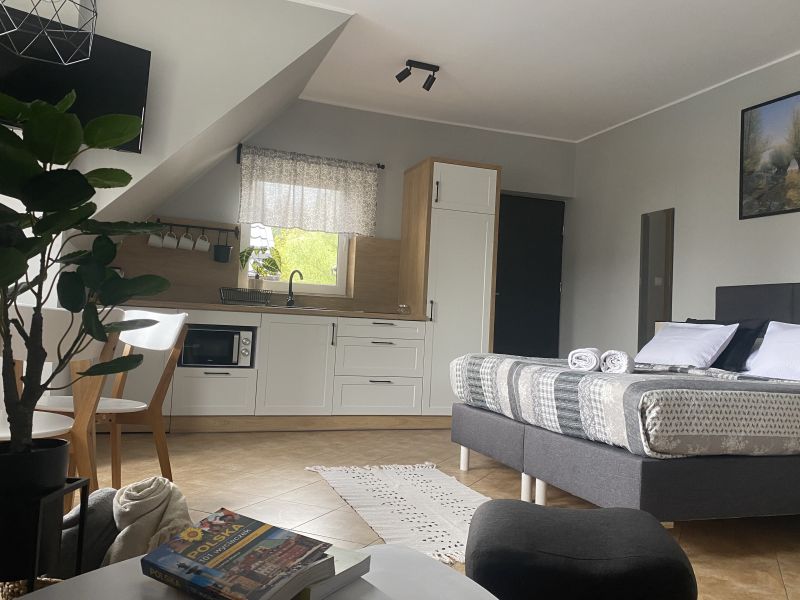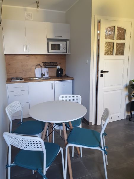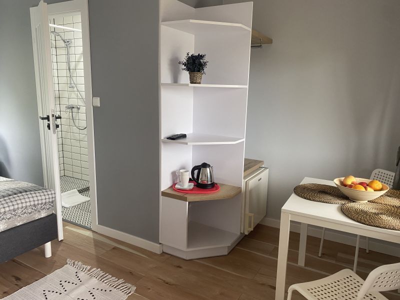 Wszystkie pokoje, domki i apartamenty mają własne łazienki z wc, umywalką i prysznicem, kuchnie w pełni wyposażone.