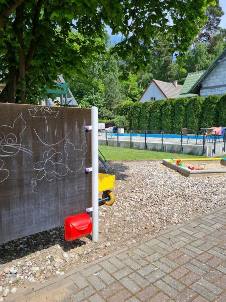 Dom Wypoczynkowy Zacisze zlokalizowany jest w cichej i spokojnej okolicy, tuż przy lesie.Naszym zdaniem to najlepsze miejsce do wypoczynku dla rodzin z dziećmi. Basen, duży, bezpieczny ogrodzony teren, dwa place zabaw dla dzieci, cisza i spokój. Nad morze prowadzi ścieżka przez pachnący sosnowy las - około 15 min spacerkiem. Każdy kto nie lubi spacerować na plażę może podjechać meleksem, których bardzo dużo jeździ po miejscowości.